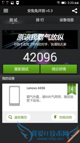 安兔兔评测AnTuTu Benchmark是一个专门给Android系统的手机、平板电脑硬件跑分的软件,它能一键运行完整测试项目,通过内存性能、CPU整数性能、CPU浮点性能、2D、3D绘图性能、数据库I/O、SD卡读、写速度等多项性能测试,并对手机的整体和单项硬件性能做出评分,同时上传分数并查看该设备在世界的排名。