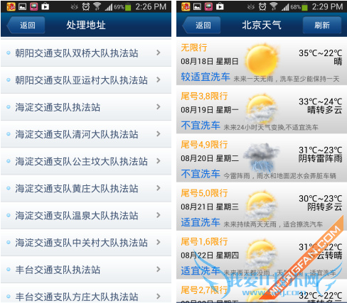 为了方便用户的出行,软件还为我们提供了详尽的天气信息,通过这个功能,我们可以了解到当天是否可以洗车,再有就是车辆的限号状况等,而且就连当天的油价信息都为我们罗列了出来,非常的人性化。