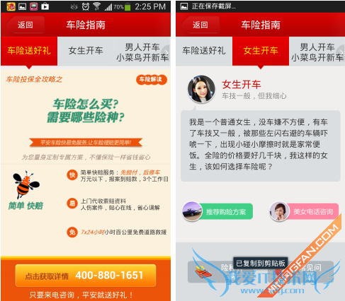 另外对于新买车的用户来说,这款软件还为我们提供了车险指南,我们都知道4S店给我们提供的方案虽然是最全面的但也是最贵的,通过这款软件我们可以快速的了解自己需要哪些险种。并且软件还提供了一些非常人性化的服务,比如女生开车一般应该注意的小事项等等。