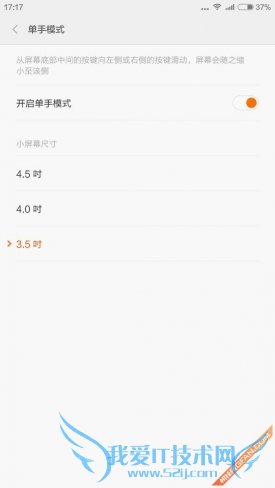 而针对增大屏幕版本的小米Note,系统中同样提供了单手模式,只要在触控键中心分别往左右滑动,即可唤醒单手模式。用户可自由选择4.5英寸、4英寸、3.5英寸三种小屏幕尺寸。