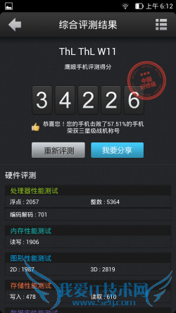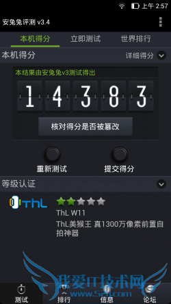 超级兔子系统评测AnTuTu Benchmark是一个专门给Android系统的手机、平板电脑硬件跑分的软件,它能一键运行完整测试项目,通过内存性能、CPU整数性能,CPU浮点性能、2D、3D绘图性能、数据库I/O、SD卡读、写速度等多项性能测试,并对手机的整体和单项硬件性能做出评分。同时上传分数并查看该设备在世界的排名。