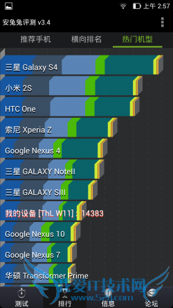 THL美猴王采用了联发科MT6589T四核1.5GHz处理器,搭配2GB RAM+32GB ROM组合,从配置上来看,THL美猴王已经达到了业界顶配,那么它的性能表现如何?下面我们就采用四款软软件对其进行测试。