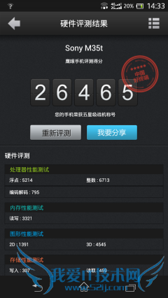 通过鹰眼手机评测,索尼M35t的综合得分为26465分,达到了双核处理器的主流水平。