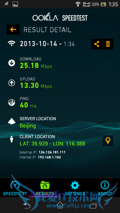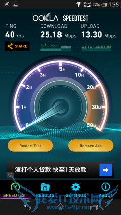 作为首款4G手机,4G网速的测试必然也不会少,为了更直观的让用户了解4G网速,此次测试小编使用了家庭20M光纤网络作为对比。测试软件则采用了Speedtest应用。测试对比项目为4G网络与家庭光纤网络的下载与上传速度。