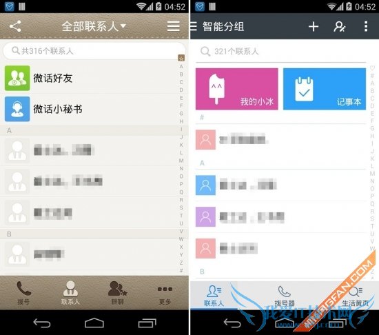 (联系人界面对比)