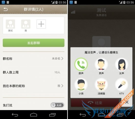 微话的群聊功能最多支持人数上限为10人,添加用户也很方便,但只限于微话用户;另外拨打免费电话中,可以选择软件附带的变声功能,让通话更有乐趣。