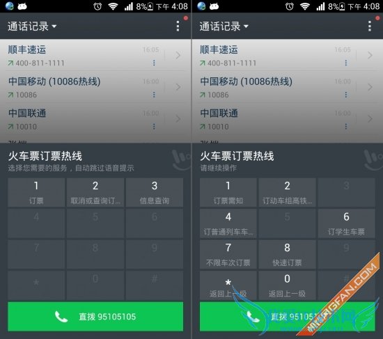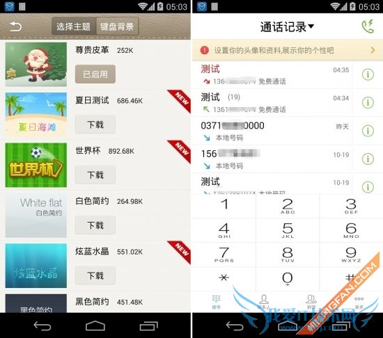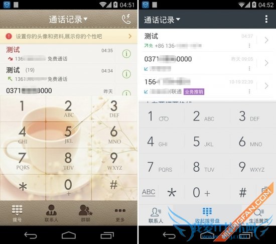 (拨号界面对比)