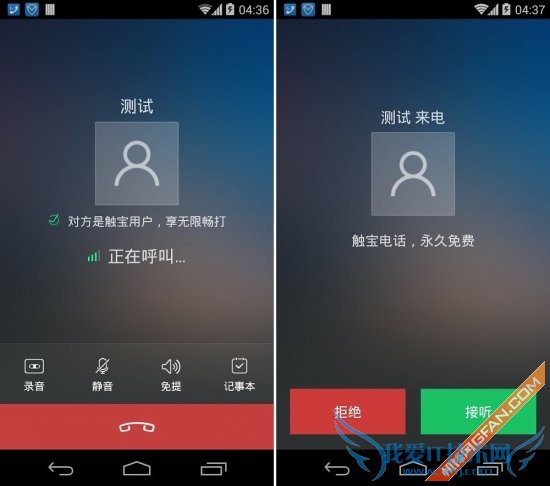 (触宝电话的拨打和接听界面)