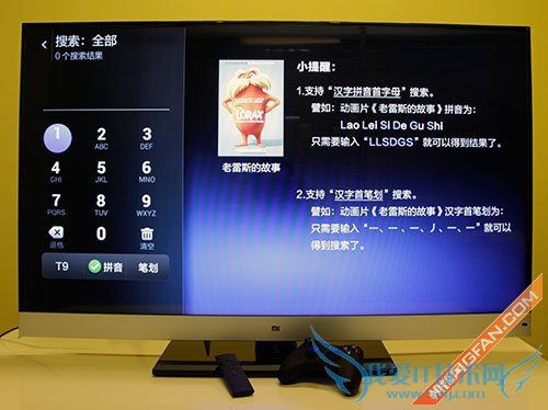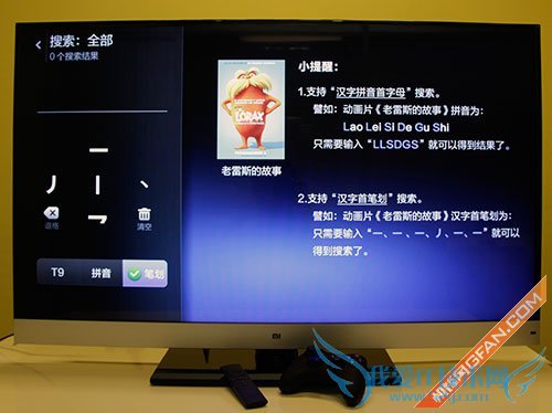 更值得一提的是节目搜索的输入形式,不但支持传统的九宫格拼音首字母搜索方案,还专为拼音不太灵光的长辈设计了笔画输入界面,这个设定无疑过大了小米电视的使用用户年龄层,让小米电视有资格作为合家欢乐的载体。