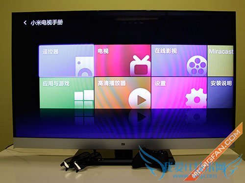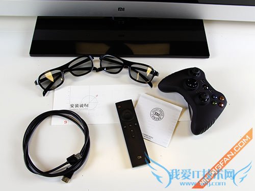 除了电视机本体外,小米电视随机配备了一个11键遥控器、两幅偏振3D眼镜、一条HDMI数据线以及一条电源线,至于蓝牙无线手柄则需要单独进行购置。整体备件还算比较完备,11键的遥控器配合MIUI的电视UI还算较为顺手,不会出现没数字键的尴尬。