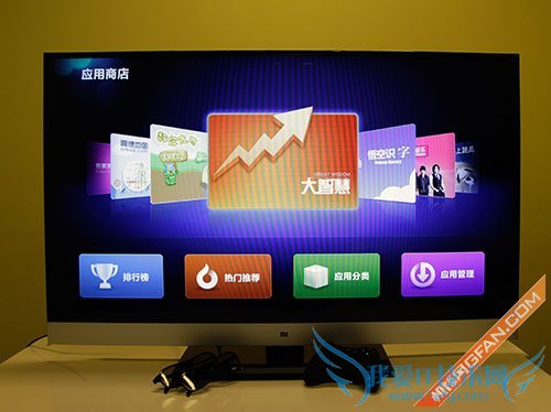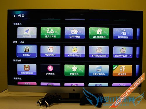 既然是智能电视,自然少不了应用商店,小米手机的应用商店,就给人一种自成一体的风格,而小米电视的应用商店也不例外。而针对小米电视的定位以及合家欢乐的特点,目前的小米电视中“教育类”应用所占的比重更大,尤其是一些儿童早教类的电子图画书更加占了主体地位,将讲故事与电视相结合,可以说应用商店中的大部分应用都是为了孩子所设计的。