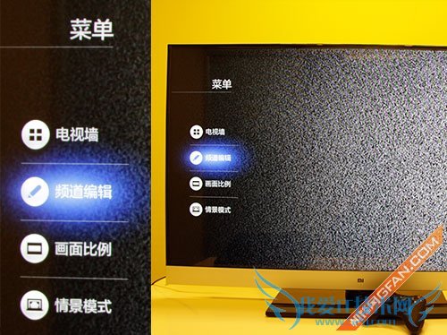 通过菜单键可以呼出左侧的快捷选项,无论是选择电视节目还是对频道编辑都是通过这个菜单完成的,相比传统的按键式选节目的方式,以“电视墙”方式对每个真在播放的节目进行小窗体预览,真的有一目十行的效果。