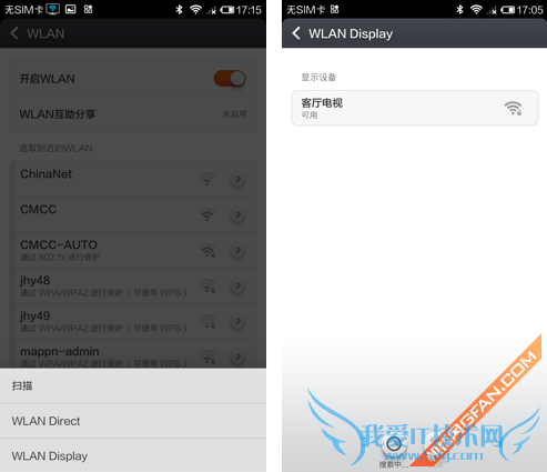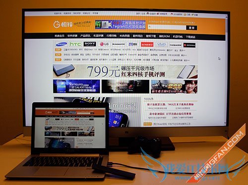 在小米电视中启动Miracast应用,同时开启小米3设置中的WLAN菜单项目中的WLAN Display选项,注意这个选项目前只有在小米3的MIUI中可以选取。其他手机UI没有这个选项。通过对WLAN Display的匹配,即可链接小米电视。可能由与时工程机的原因,也有可能是公司的无线网络环境不稳定所致,Miracast链接后的会偶尔出现卡顿效果。