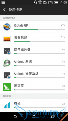 WIFI情况下,使用腾讯视频客户端在线播放视频,测试半小时后电量由87%降至82%,共消耗5%电量。