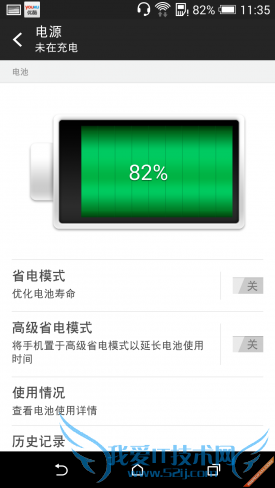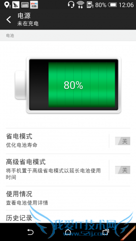 通过以上测试,可以看出HTC One 时尚版的四项测试共消耗了20%的电量,相较于众多手机来说,优势非常明显,有些手机甚至在游戏一个环节就会消耗15%的电量。另外,由于未开启省电模式,相信在开启后应该会有较为不错的续航表现,内置的高级省电模式可以使手机在10%电量情况下拥有超长待机时间,根据 HTC 宣称,这个极致省电模式若是在满电的情况下,可待机 2 周,剩余 10% 可待机 30 小时。而极致省电模式除了可以自己开启外,也能设定电量在多少百分比以下自动开启。