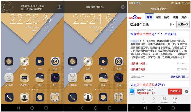 ▲一旦遇到稍稍需要「智力」的操作,例如「讲笑话」、「锁屏」等等,语音助手就只能打开浏览器帮你「百度一下」了。而且在没有联网的情况下只能使用打电话的功能。整体上该功能还是比较鸡肋,希望日后荣耀能够在这方面做出进一步的努力。