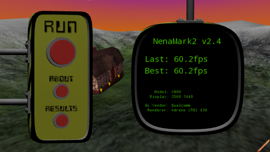 NenaMark2是一款面向Android智能手机的图形处理能力测试工具,通过一段视频Demo的播放测试手机图形处理单元的硬件加速能力。