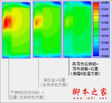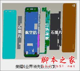 华为荣耀6使用了两片石墨片(小米4等友商通常只用一片),一块贴在前壳支架上,一块贴在电池盖上。同时采用了针对性的侧边降温设计,进一步均匀和降低手机的温度。