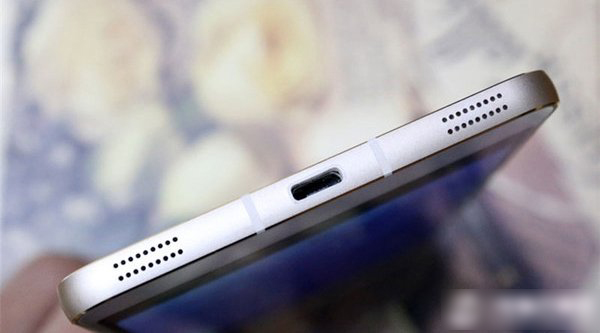 ivvi S6底部的扬声器网孔采用左右对称式设计,视觉效果更佳,但遗憾的是只有一个网孔起来实际扬声器的作用,另外一个只是配有主麦克风。另外,这里还配备Micro USB接口,而因为边框为金属材质的缘故,对通信造成一定的影响,接口两旁分别拥有一条白色的间断线,对信号收发能力提供积极作用。