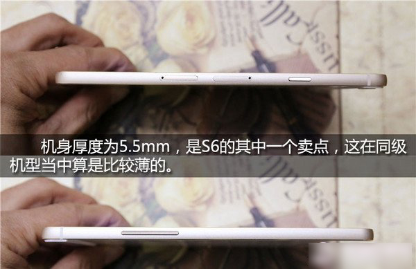 一体式音量大小控制键与锁屏按键分别设置在机身两侧,位置在靠上方便于操作,色调也与边框融为一体,其表面拥有特殊的纹理,经CNC加工与阳极氧化制作,摩擦性更好。机身厚度为5.5mm,与多数机型对比起来,都显得非常纤薄。