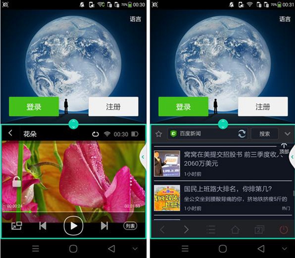 手机系统当中还设有智能多屏的功能,通过这个功能,用户可以同时查看两个程序界面,如可以边聊微信,边看视频或边上网。