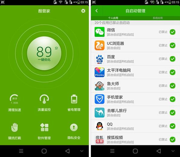 酷管家是ivvi S6当中比较实用的程序,在安全功能方面一如既往的重视,领先于不少同级国产机型,同时还配有自启管理功能,减少不必要的应用在后台或开机的时候自动启动,避免占用CPU与RAM资源。