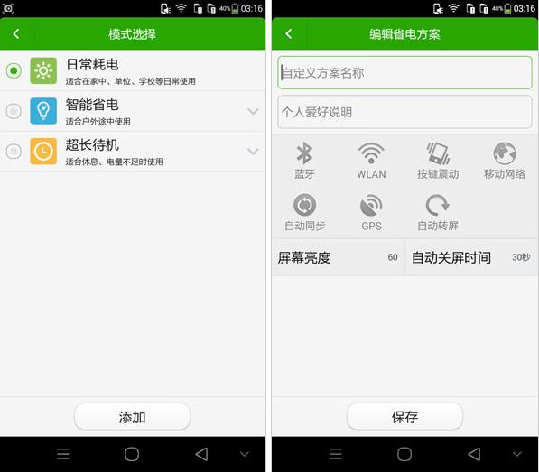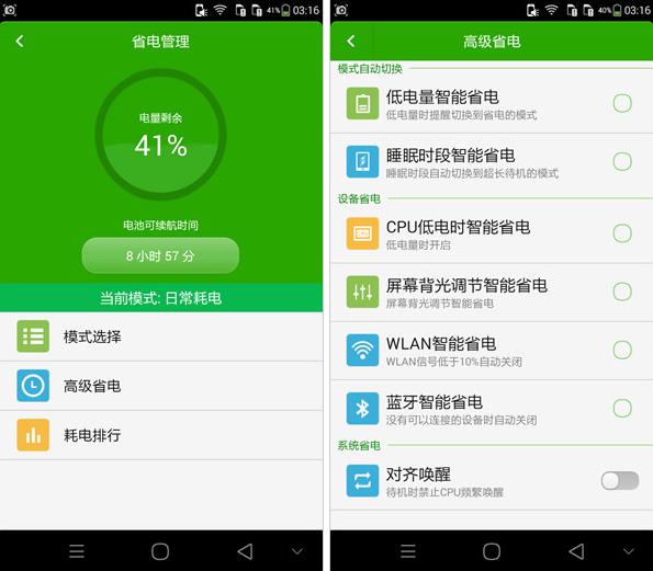 像很多机型一样,ivvi S6也内置了省电软件,拥有日常耗电,智能省电与超长待机这三种模式,另外还设有高级模式供用户根据自己的需要进行个性化设置。