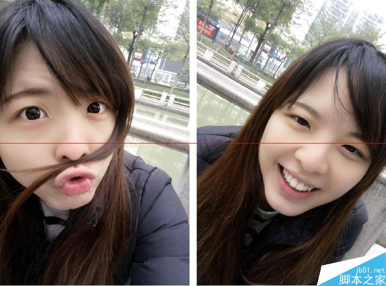 前置拍照需要更好的固定拍摄时的动作,不然容易出现左图抖动的情况。右图妹纸深邃但却有有些俏皮的眼神在双眼皮的衬托下显得无比唯妙唯肖,细腻的面部线条与小酒窝让妹纸更美一筹,这可是素颜呢。