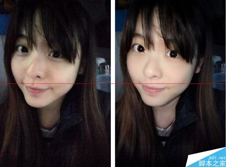 夜间关闭/开启前置柔光灯样张,可见在光线不足情况下出现非常多燥点,并且很大程度上拉低了画质,开启了柔光灯在最大程度上“打亮”了肤色,看得更清晰更真实。
