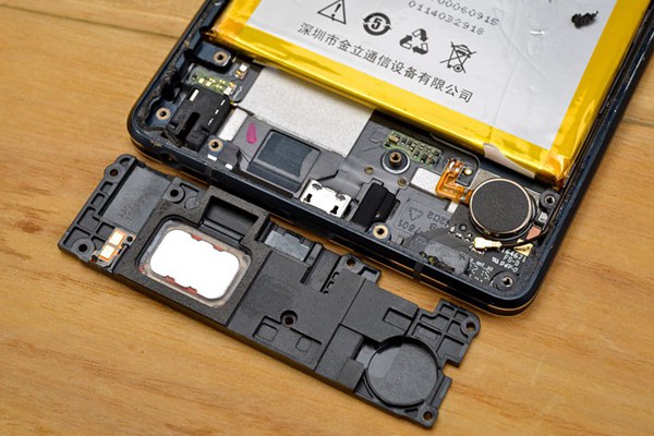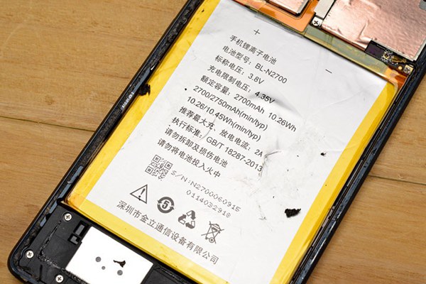 图为金立S7内置电池特写,其容量为2750mAh,可以提供较为出色的续航时间,做到超薄的同时也兼顾了续航时间。