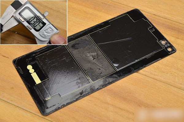 金立S7后盖上覆盖有石墨散热膜,主要是帮助手机的电池和主板散热。