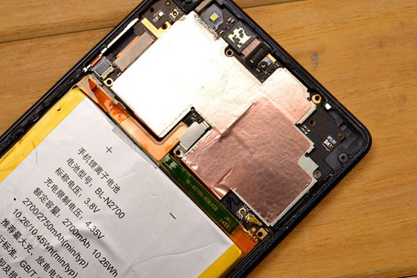 另外也可以看到PCB的背面也有散热硅胶,从这些细节可以看出,对于这款一款超薄手机,金立对其散热也是有充分考虑的。