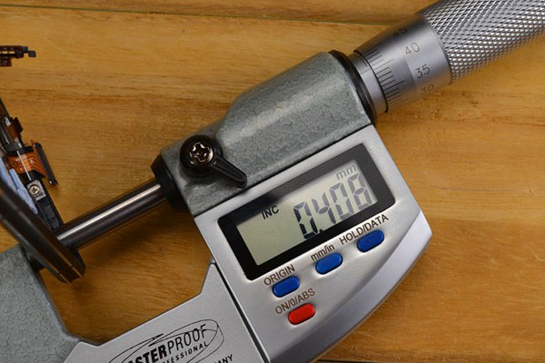 通过测量,我们可以看到金立S7的前面板玻璃厚度仅为0.4mm,非常的纤薄。