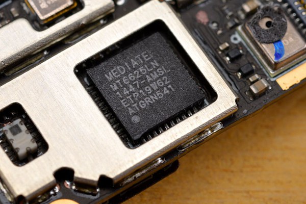 图为MT6169基带射频芯片特写,主要负责手机的4G和3G信号部分。