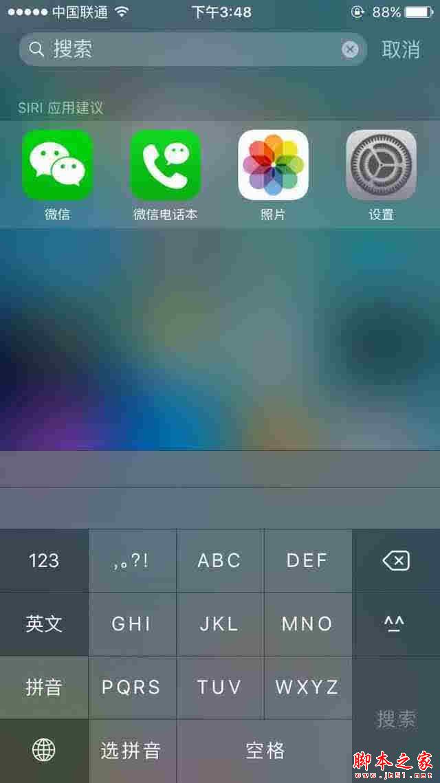 iOS 8主界面下拉菜单 iOS 9主界面下拉菜单