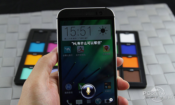 HTC M8 Eye的语音助手名为“小hi”,这是国行版本本土化后所加入的,国际版为Google Now。它的启动方式有两种,一可以直接点击其程序列表的“小hi”启动,二是在锁屏状态下按下底部向上的剪头网上拉到搜索图标那里,而在解锁状况下则是按着虚拟主页键向上拉。比较可惜的是其并不支持语音唤醒,这样就不能做到全程的语音操作。