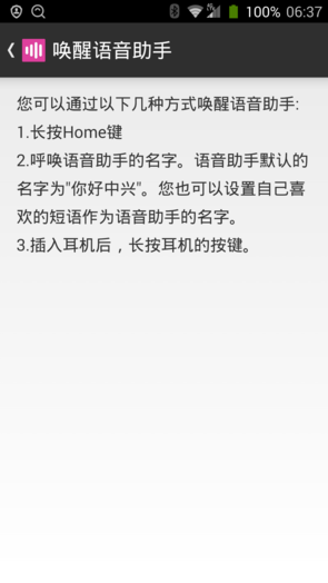 中兴星星1号语音助手启动方式显得十分方便,默认状态下,各种状态(黑屏、锁屏、解锁亮屏等)下只要对手机发出“你好 中兴”的指令或亮屏状态下长按虚拟主页键,语音助手就可启动,当成功开启语音助手后,顶部状态栏会有语音图标出现。当然语音唤醒的启动手机指令是可以更改的,你们可以设置诸如“你好 芝麻开门”等。