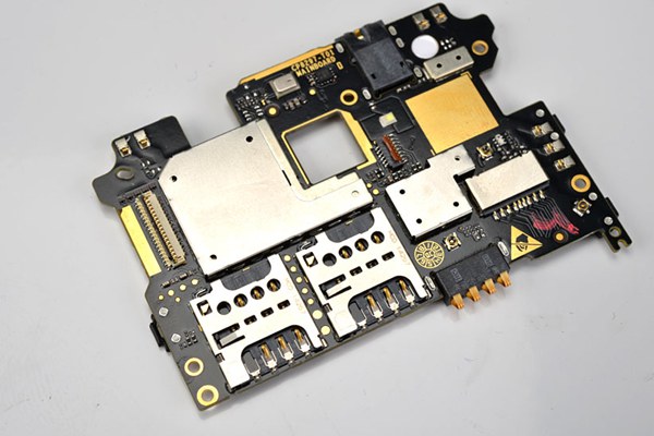 下图为拆解下来的大神F1 Plus核心大主板特写,主板正面主要是双SIM卡插槽、TF卡插槽和一些连接器。