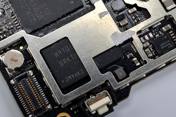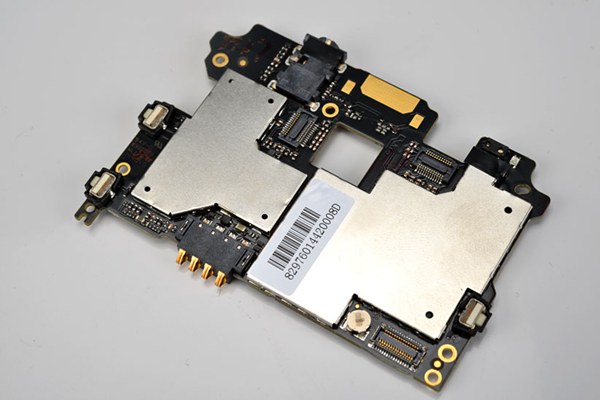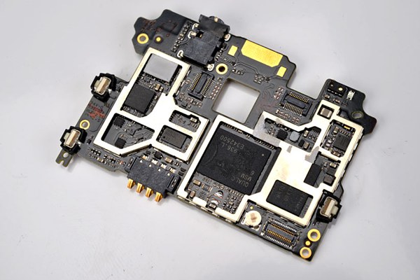 拆开屏蔽罩后可以看到大神F1 Plus主板中集成的处理器、内存和基带芯片了,文章最后我们主要来放大看看大神F1 Plus都用了哪些芯片。