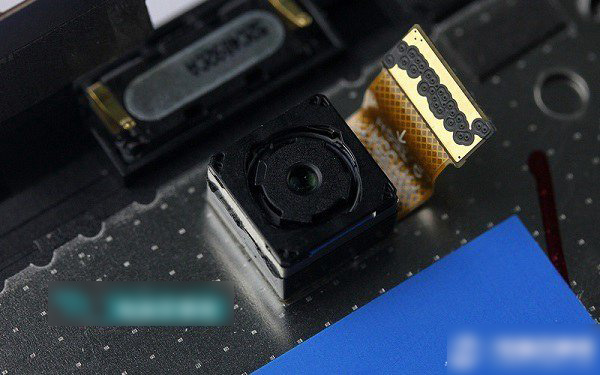 下图看到的是中兴红牛V5后置1300万像素摄像头特写,由于摄像头与屏幕粘合在一起,并且粘合固定的比较紧,因此这里就不取下来了。