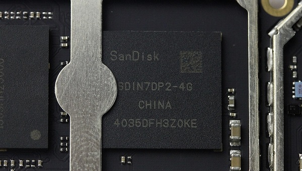 图为闪迪4GB容量内置存储芯片特写