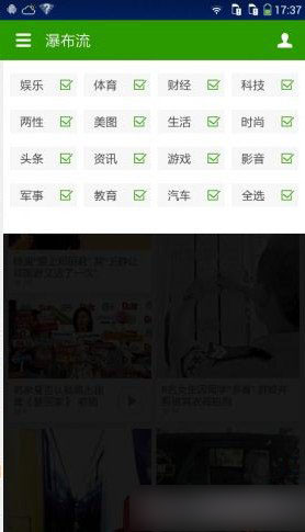 此外,系统中,还内置了瀑布流模式的资讯界面,提供了娱乐、体育、财经、科技等多方资讯,方便用户实时浏览最新新闻。