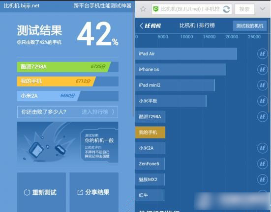 比机机(BIJIJI)是一款跨平台手机测试工具,它为Android、iOS和Windows Phone等移动设备提供性能测试,性能排行等功能。让用户可以很清晰的了解自己的手机性能所处的位置。