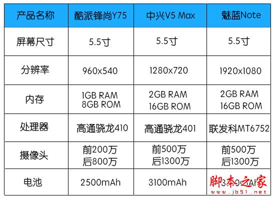 (从上至下依次为中兴V5 Max、酷派Y75、魅蓝Note)