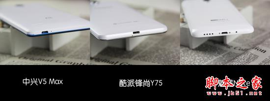 机身侧面,酷派Y75采用平衡美学设计,将电源键和音量键分别设计在机身左右侧,而中兴V5 Max则将两个按键设计到右侧,而魅族因为电源键设计到顶部,所以侧面只有一个音量按键。