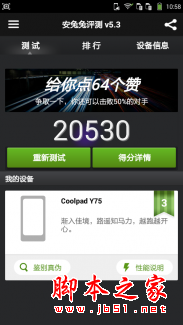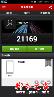 安兔兔评测是一个专门给Android系统的手机、平板电脑硬件跑分的软件,它能一键运行完整测试项目,通过内存性能、CPU整数性能,CPU浮点性能、2D、3D绘图性能、数据库I/O、SD卡读、写速度等多项性能测试,并对手机的整体和单项硬件性能做出评分。同时上传分数并查看该设备在世界的排名。