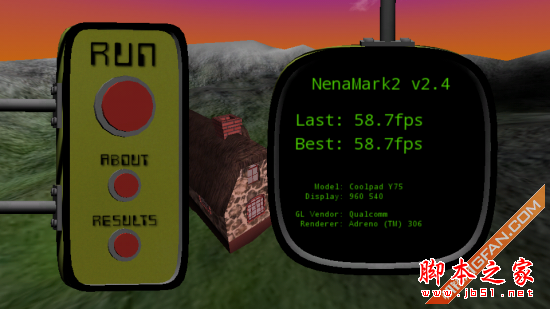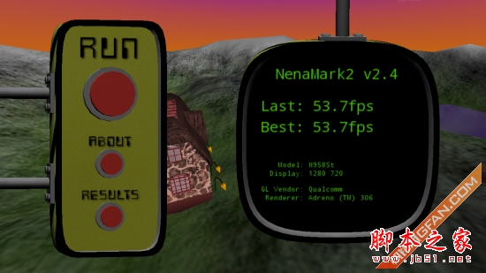 NenaMark2是一款面向Android智能手机的图形处理能力测试工具,通过一段视频Demo的播放测试手机图形处理单元的硬件加速能力。其中Nenamark1适用于所有运行Android 2.x版本系统的终端;Nenamark2则适用于装备PowerVR SGX 540及以上图形芯片的高端Android设备。