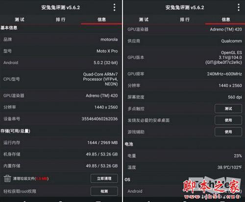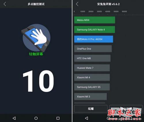 既然手机本身定位是旗舰,那么配置一定是豪华的,其实从屏幕和处理器看已经知道了这款Moto X Pro是怎样的产品。细节方面也做的非常到位,比如屏幕支持10点触控,比一般手机只支持5点触控强大得多,尽管你可能在手机上用不到。安兔兔跑分数值达到了46354,非常惊人。