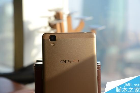 主摄像头位于左上角,略微凸起并有一圈金属保护,摄像头下方是一颗补光灯。中央的“OPPO标志采用了剖光处理。