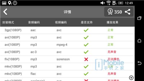 视频测试方面HTC Desire826的成绩表现一般,在视频和音频的兼容性上并不突出,不过通常我们选择客户端进行视频观看,影响并不严重。